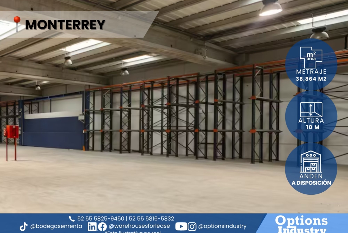 Arrendamiento de nave industrial en excelente ubicación Monterrey